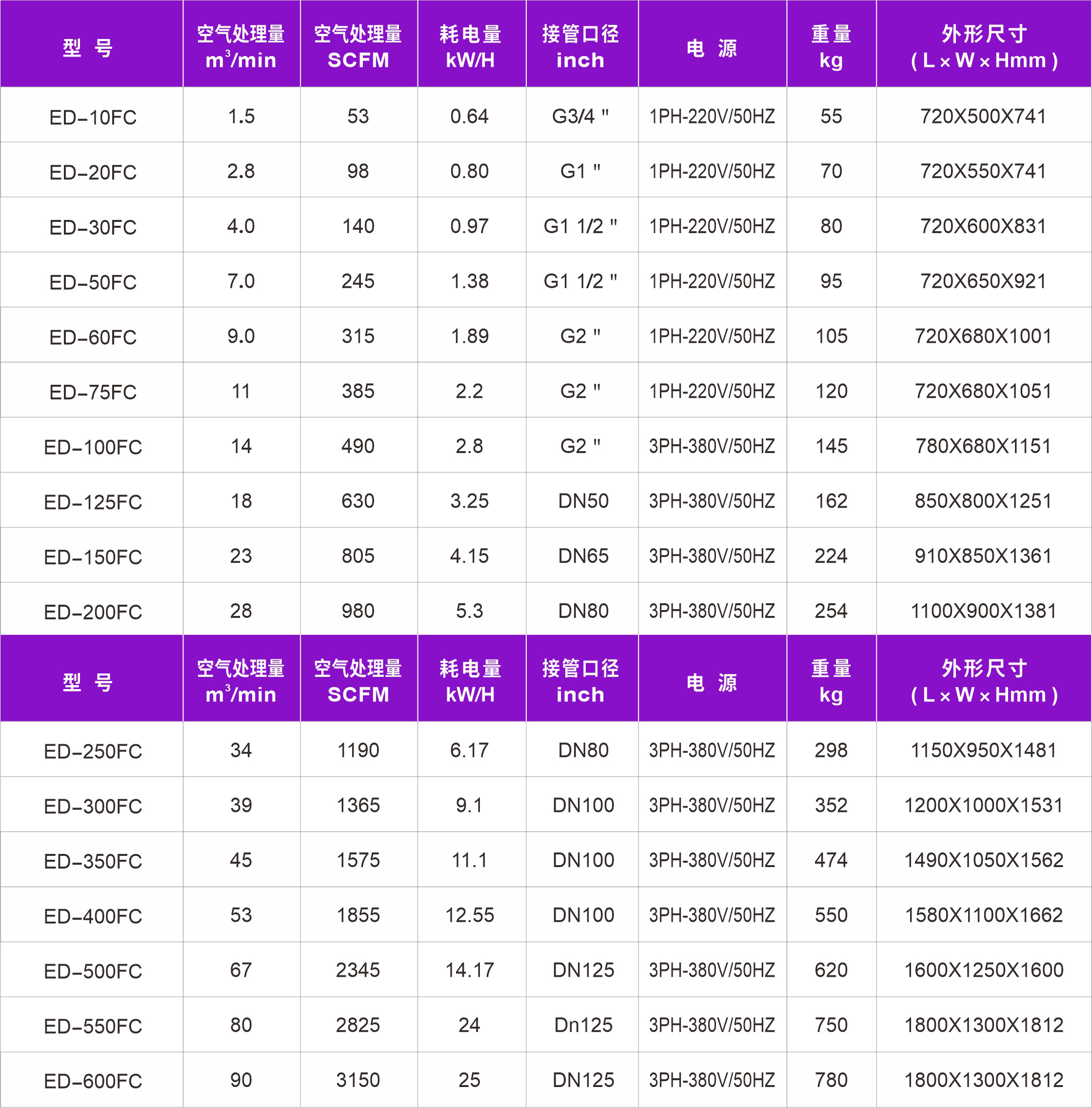 低露点:在标准工况下,压力露点可以达到5℃以下,出口空气常压露点达到-20℃以下。预冷回热器:选用螺纹铜管或光管,传热系数高,采用了逆流回热的热交换方式,比普通的顺流方式更加节能和稳定。
